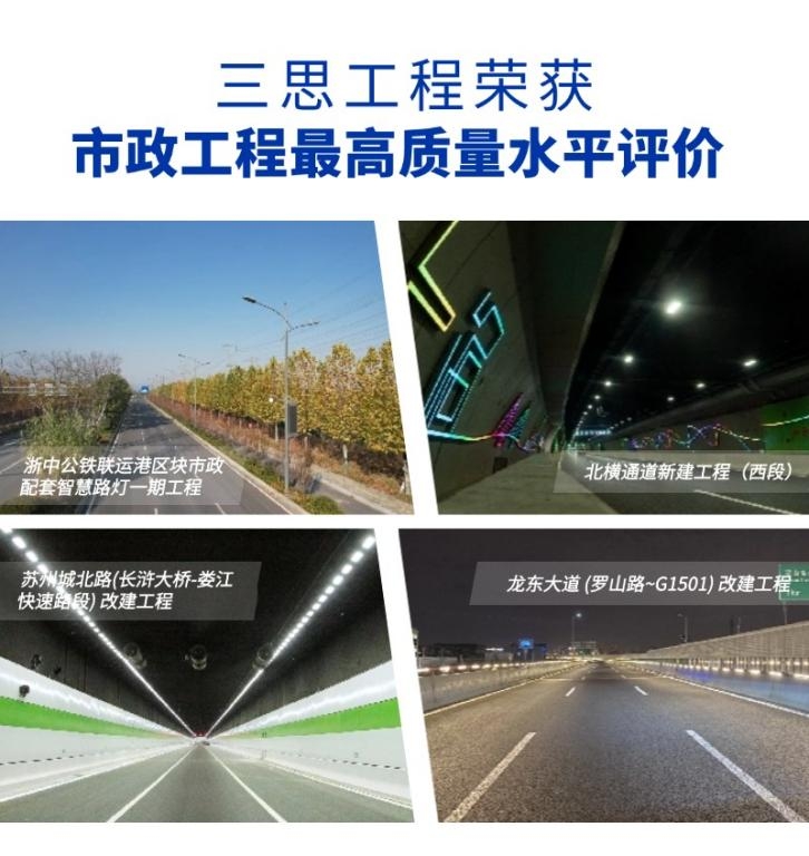 近日,中國(guó)市政工程協(xié)會(huì)公布“2024年度通過(guò)市政工程最高質(zhì)量水平評(píng)價(jià)工程名單”,浙中公鐵聯(lián)運(yùn)港區(qū)塊市政配套智慧路燈一期工程(縱一、縱二、清照路)EPC 項(xiàng)目、北橫通道新建工程(西段)、蘇州城北路(長(zhǎng)滸大橋-婁江快速路段) 改建工程及龍東大道 (羅山路~G1501) 改建工程在內(nèi)由三思所承建的多項(xiàng)市政照明工程獲“2024年度市政工程最高質(zhì)量水平評(píng)價(jià)”。